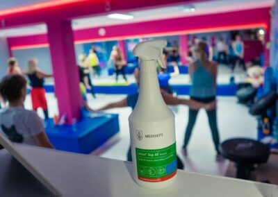 Przed korzystaniem z usług D3Hemmerling w klubach fitness FitDanceFun Fordon oraz Błonie prowadzona była dezynfekcja opryskowa. Jest to przede wszystkim dezynfekcja miejscowa o mniejszej skuteczności niż ozonowanie. Dezynfekcja przez ozonowanie działa na powierzchnie, ale również penetruje do kilku cm w głąb powierzchni zwłaszcza porowatej.